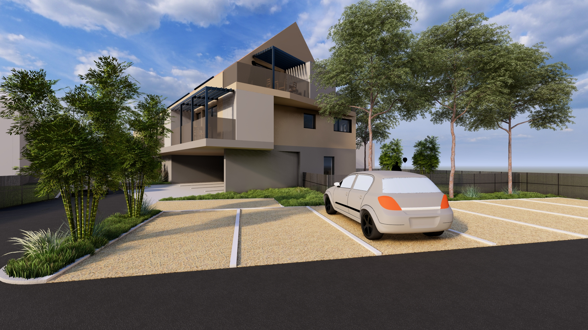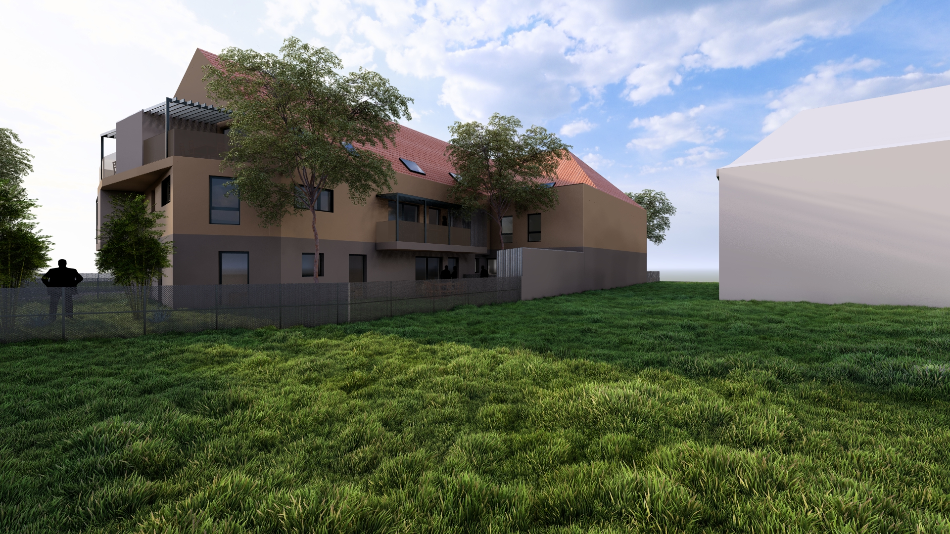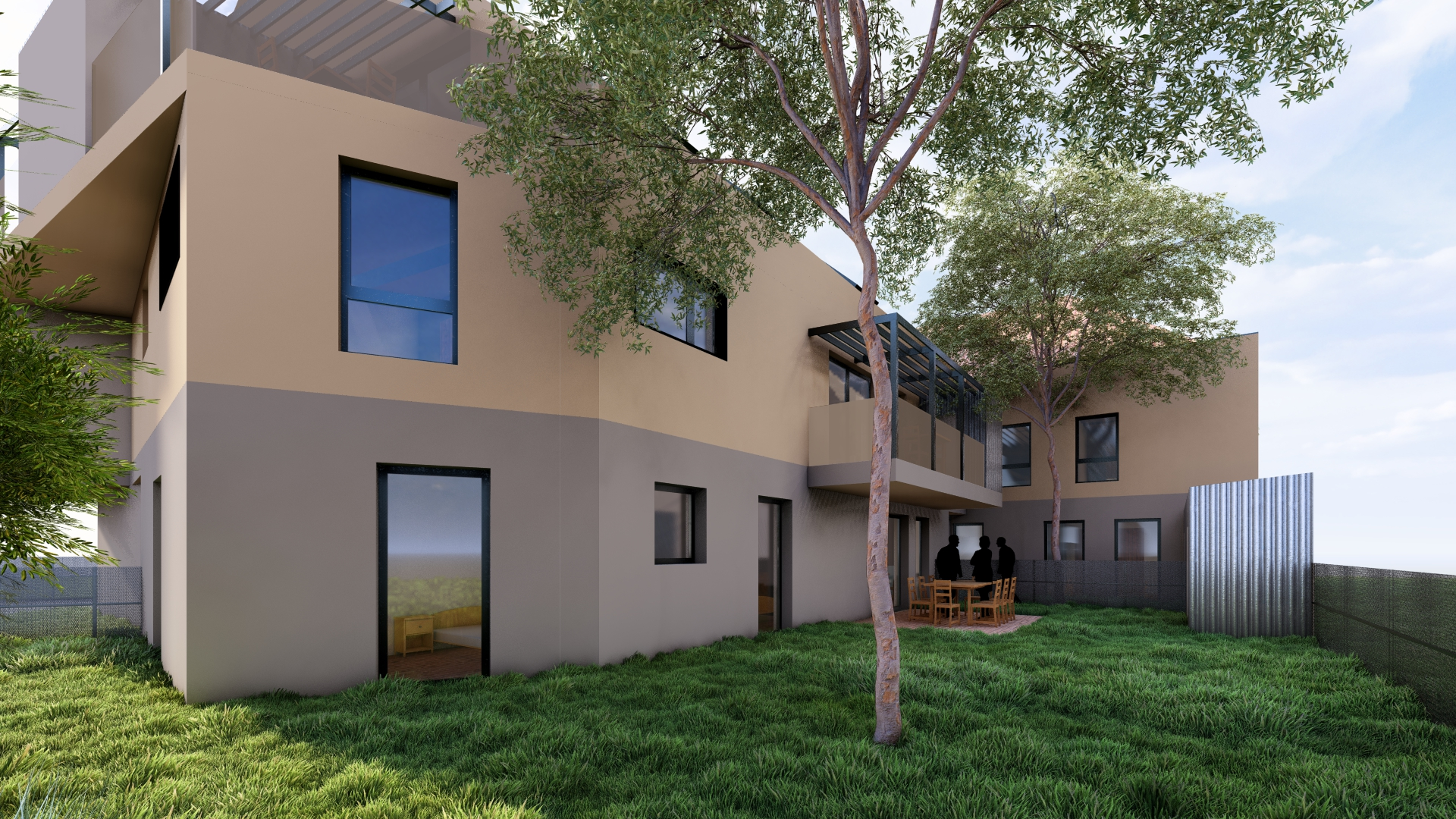 Le projet s’attache à s’inscrire avec la plus grande justesse dans son environnement immédiat, en conciliant harmonieusement les exigences du site et les orientations réglementaires issues du PLU. Bien qu’il procède d’une optimisation foncière rigoureuse, il se distingue par une volonté affirmée de préserver la qualité architecturale et le confort d’usage. Les logements ont été conçus avec un soin particulier porté aux qualités spatiales : proportions équilibrées, circulations maîtrisées, apports lumineux généreux et organisation intérieure lisible. Chacune des unités bénéficie d’un espace extérieur privatif, terrasse, balcon ou jardin, permettant une continuité sensible entre l’intérieur et le paysage, et renforçant ainsi l’agrément de vie des futurs occupants. Le plan, résolument clair et structuré, témoigne d’une intention méthodique et d’une recherche attentive de cohérence constructive. L’ensemble constitue une opération à la fois rationnelle et élégante, où l’optimisation foncière ne se fait jamais au détriment de la qualité architecturale ni du bien-être des habitants.